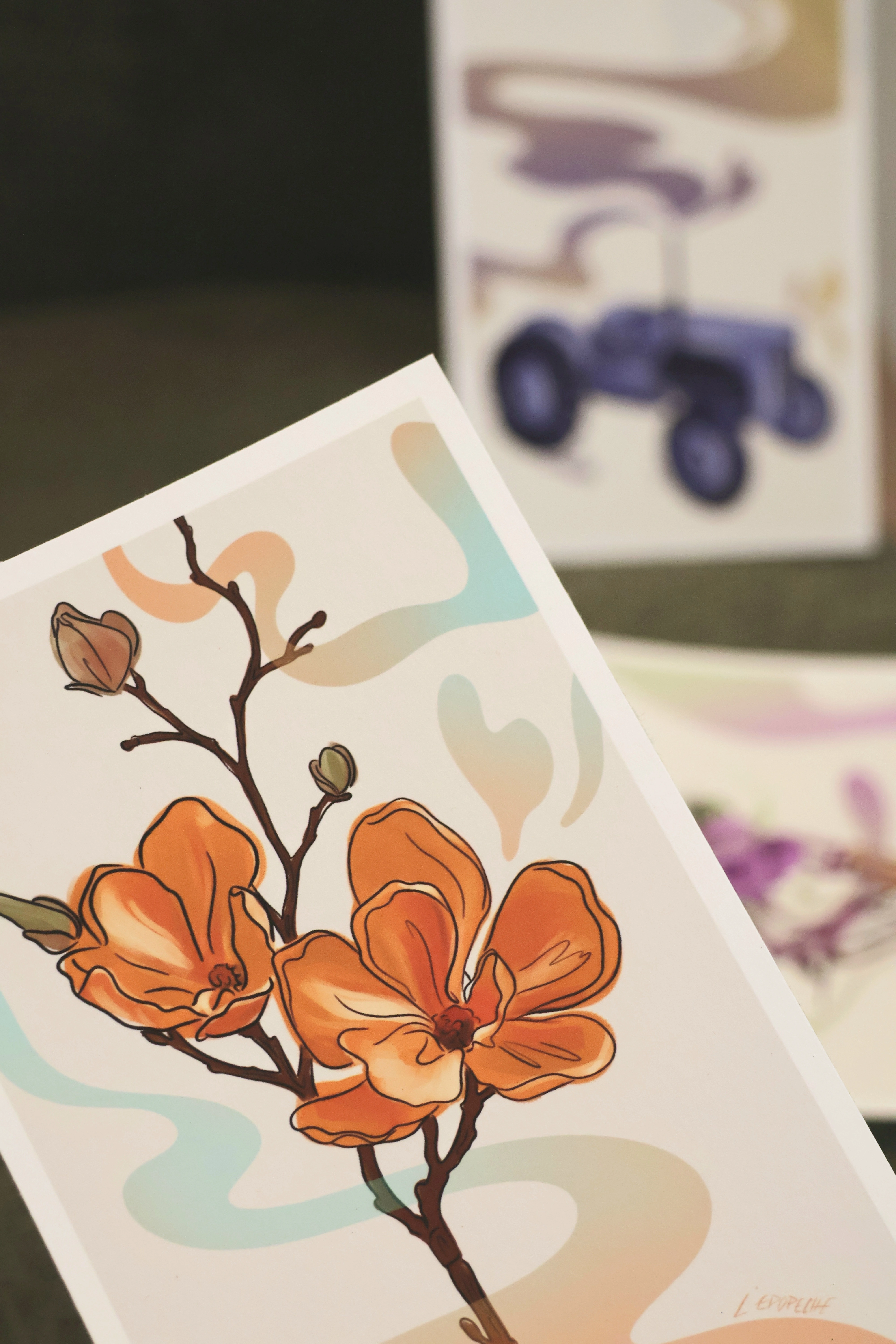 Description : Un ensemble de 3 cartes colorées à encadrer ou à offrir. Le lot contient la carte orchidée, la carte vélo fleuri et la carte tracteur vintage. Détail des cartes : Dimensions : 10 x...