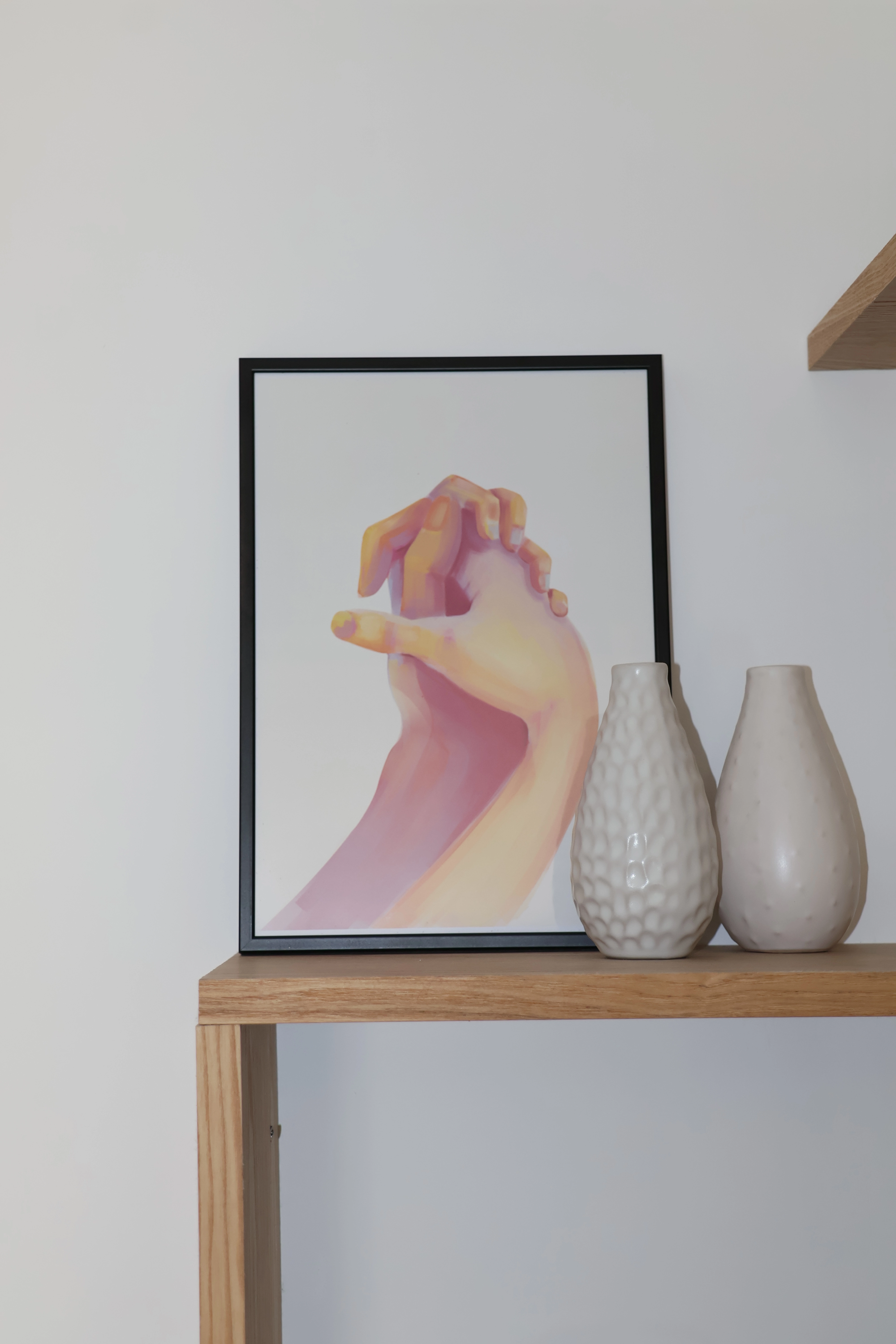 Description : Illustration de mains dans un style de peinture aux couleurs vives. Détail du produit : Dimensions : 21x 29,7cm (A4) Qualité : impression laser sur papier légèrement glacé 300g....